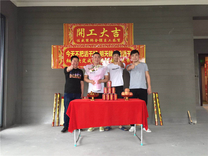 業(yè)主、設(shè)計師、項目經(jīng)理開工合影: