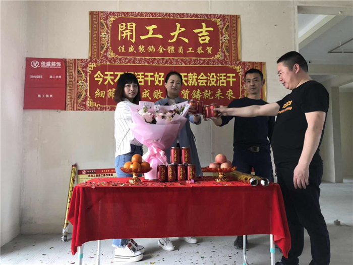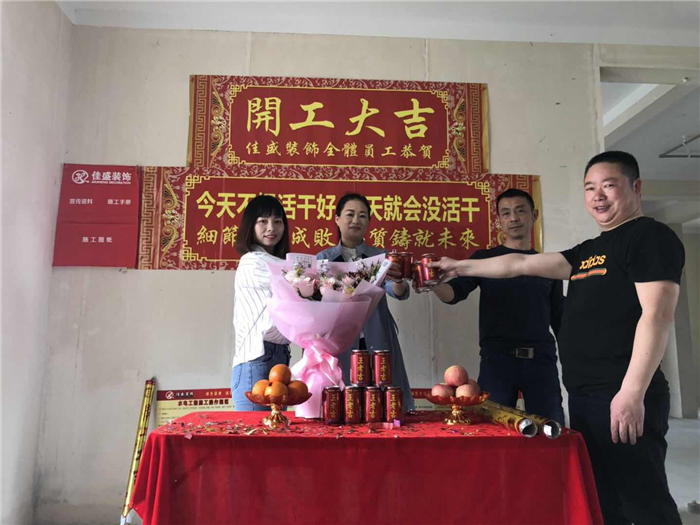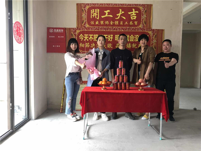 業(yè)主、設(shè)計(jì)師、項(xiàng)目經(jīng)理開工合影: