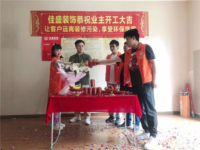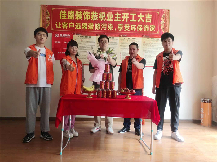 業(yè)主、設計師、項目經理開工合影: