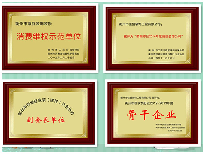 2016年被市場監(jiān)督管理局評為衢州市誠信裝飾企業(yè);佳盛裝飾,期待與您共同長期發(fā)展!